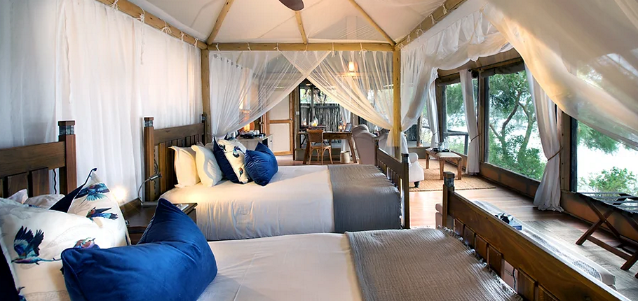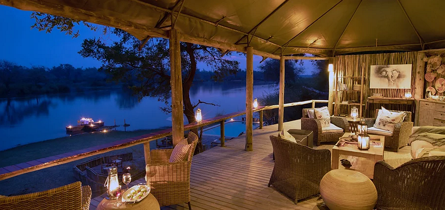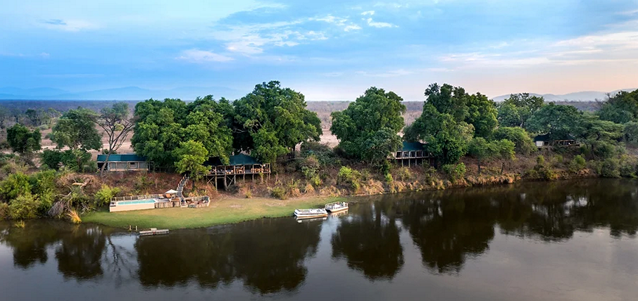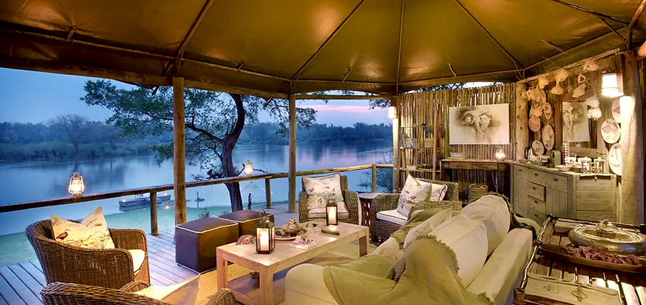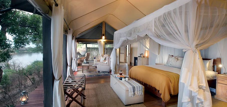 Luxury Tented Lodge on the banks of the Zambezi River, Lower Zambezi National Park, Zambia.