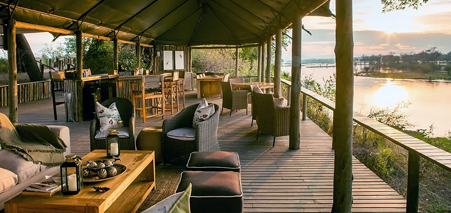 Nestled on the banks of the mighty Zambezi River, the camp seamlessly blends sophistication with nature, offering breathtaking river views, immersive wildlife encounters, and a range of thrilling activities, from guided game drives and walking safaris to scenic boat cruises and tiger fishing. The central lounge, dining, bar, and pool areas provide the perfect setting to unwind after a day of adventure.