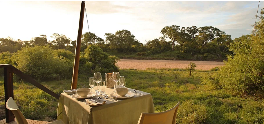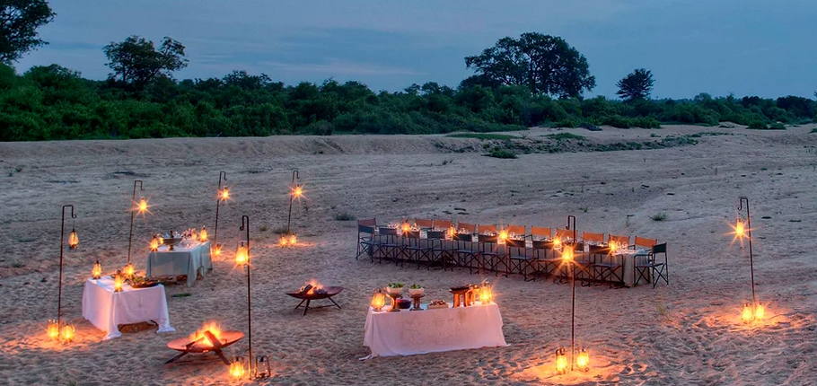 Dining Under the Stars: Indulge in gourmet private dining on the viewing deck, by the poolside, or in the magical dry riverbed, illuminated by lanterns and the African night sky
