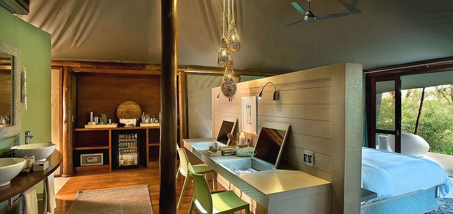 Designed for both comfort and adventure, Ngala Tented Camp features just nine exclusive tented suites, each elevated on wooden platforms and nestled within a canopy of trees to maintain the natural integrity of the environment. These contemporary tented suites offer:
