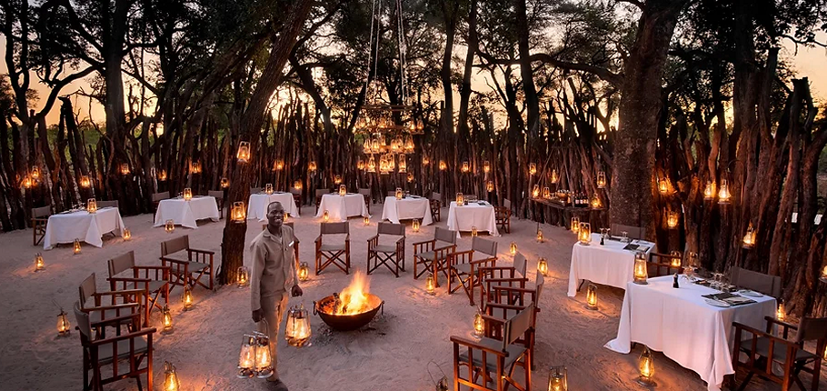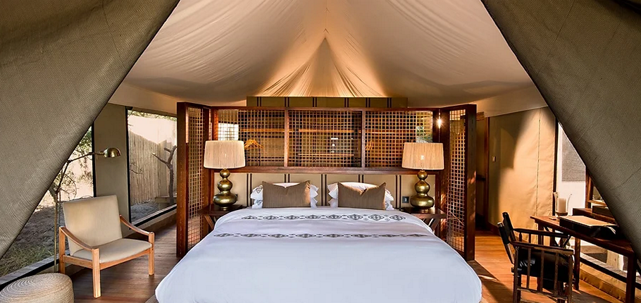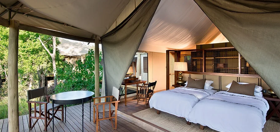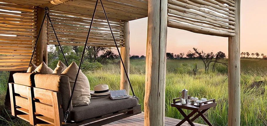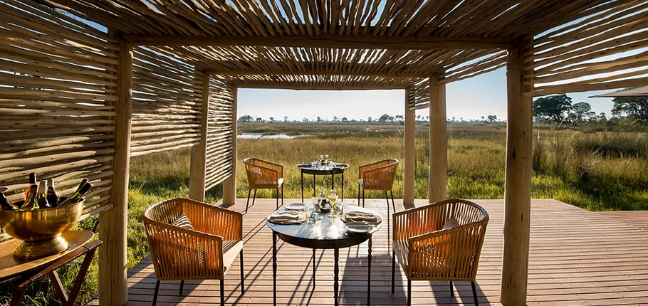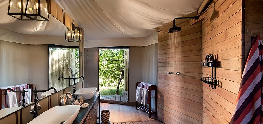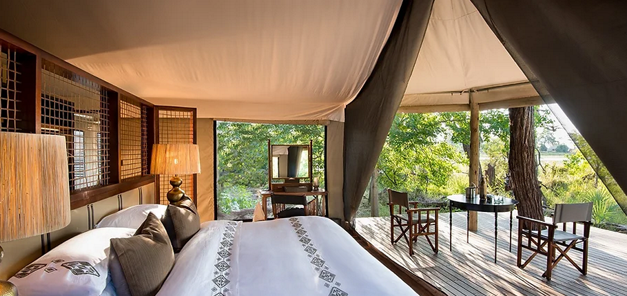 Designed for exclusivity and comfort, each elegantly appointed tent boasts burnished teak flooring, a private deck, and large windows that frame breathtaking Delta views. The interiors reflect the raw beauty of the surroundings, blending natural tones with handcrafted décor. The ensuite bathrooms include both indoor and open-air showers, allowing guests to immerse themselves in nature while enjoying modern comforts.