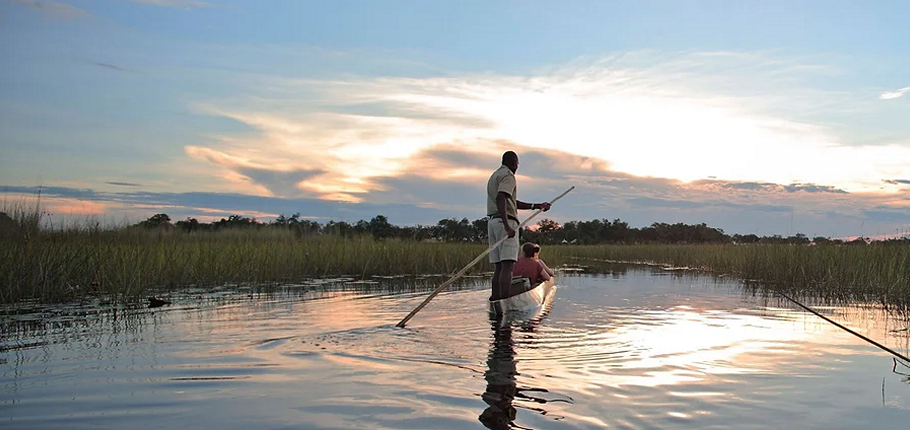 One of the most iconic ways to explore the Okavango Delta is through a Mokoro safari, a traditional dugout canoe journey through the maze-like waterways. These silent, non-motorized excursions provide an intimate look at reed-fringed islands, leaping lechwe, shy sitatunga antelope, and vibrant kingfishers darting across the water.