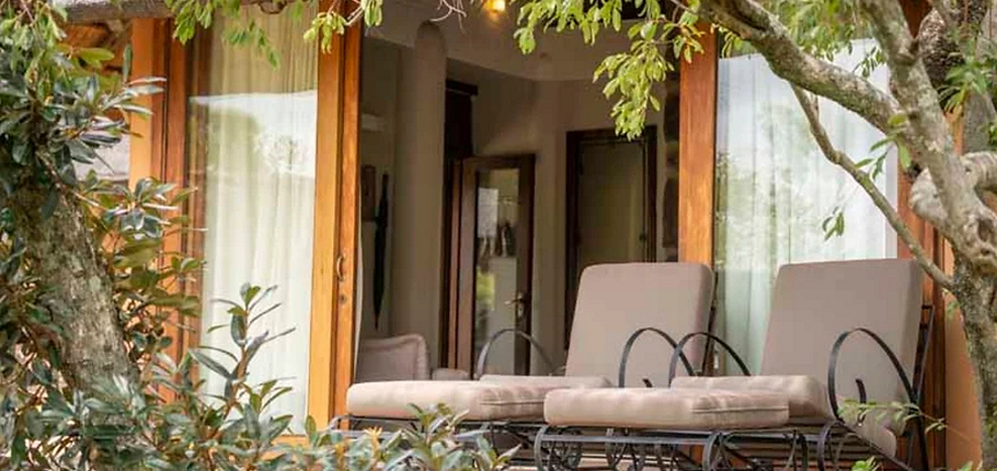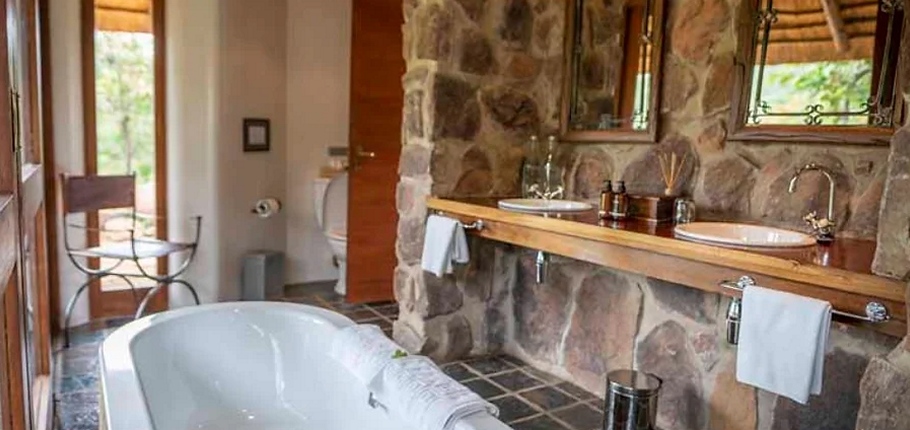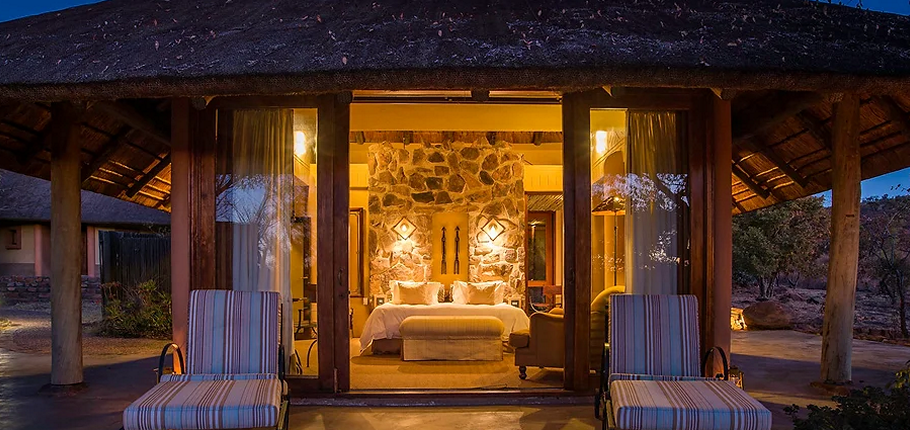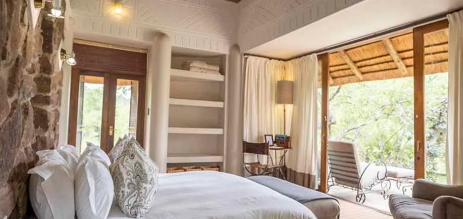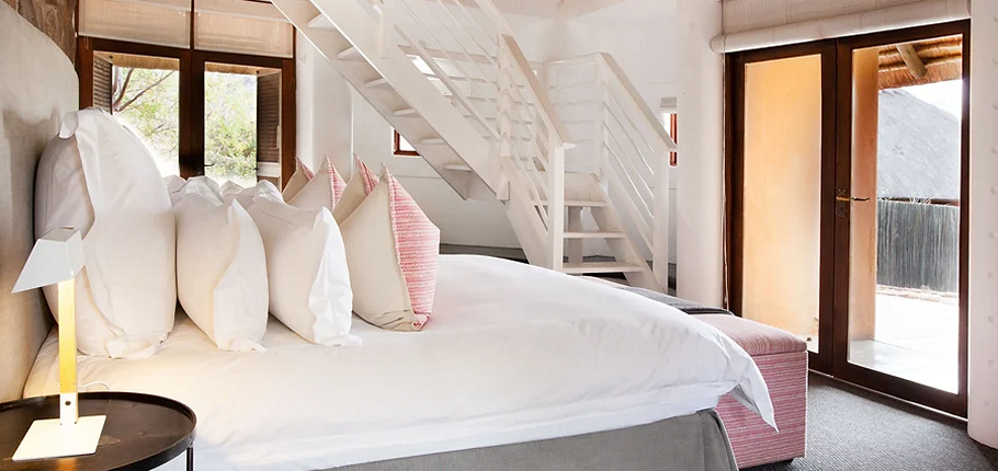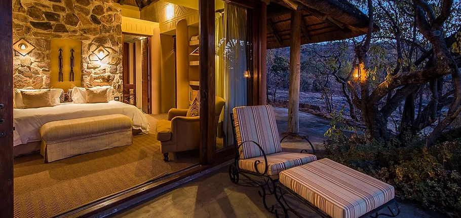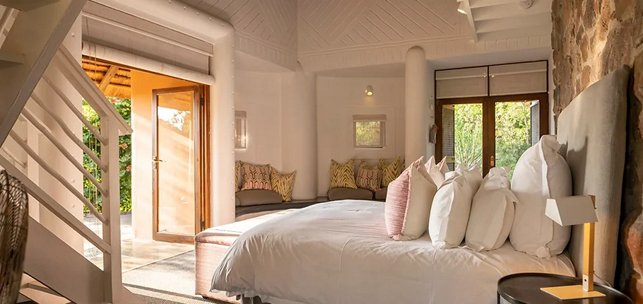 Each chalet is thoughtfully designed for privacy and relaxation, with spacious interiors and romantic bathrooms featuring both indoor and outdoor showers. Guests can enjoy the tranquility of the lodge while being just steps away from nature, with abundant wildlife including the Big Five, as well as unique flora and birdlife.