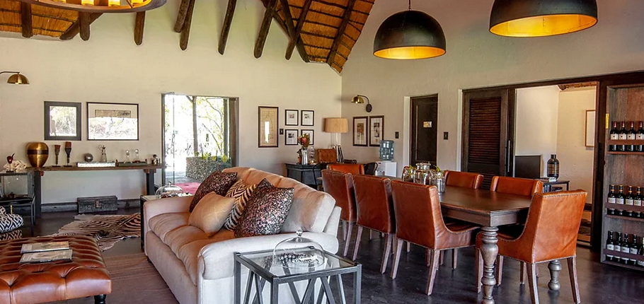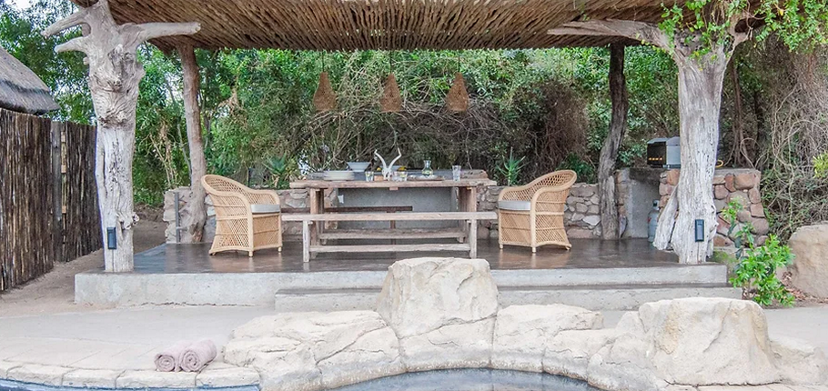 Spacious indoor and outdoor living areas, including a private boma, perfect for fireside dining under the African sky.