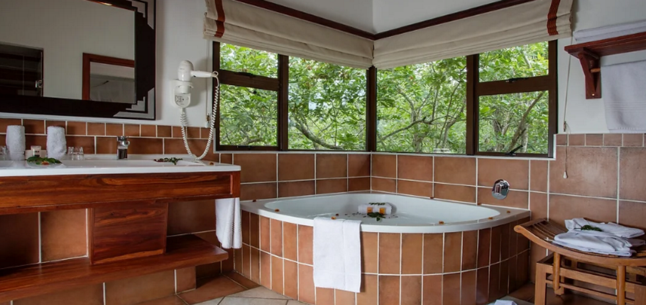 Nine classic chalets, recently renovated to enhance comfort, feature air-conditioning, ceiling fans, mosquito nets, and private outdoor showers. Spacious private decks, complete with plush seating, allow guests to relax while observing wildlife that frequently passes through the lodge grounds.