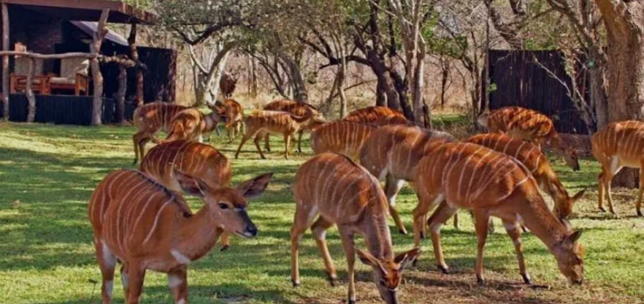 A tranquil bush setting, where wildlife roams freely between chalets.
