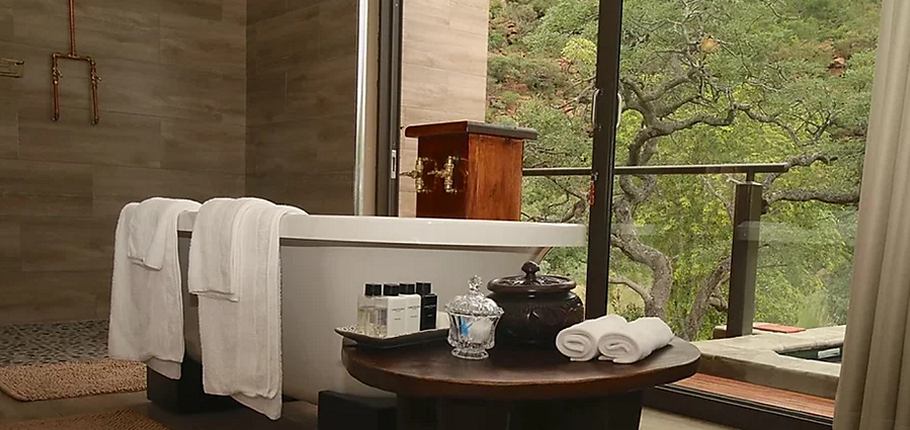 The five spacious safari tents at Inzalo Safari Lodge offer the perfect setting for a romantic getaway. Each 50 sqm suite is beautifully designed with a private plunge pool, outdoor shower, and a romantic stand-alone bath on the private deck, allowing you to immerse yourself in the tranquility of the African bush. Air-conditioned for comfort, these tents offer an intimate and luxurious experience, making them ideal for couples seeking a peaceful, secluded retreat. Enjoy breathtaking views and ultimate privacy, creating unforgettable memories in the heart of nature.