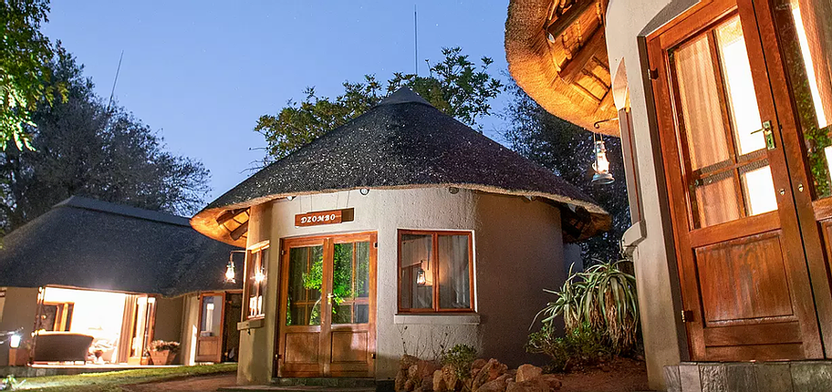 Nestled beneath towering trees, River Rock Lodge captures the essence of a bygone safari era while ensuring modern comforts. The lodge’s five luxury rondavels, each overlooking the river, provide a perfect blend of rustic elegance and contemporary amenities. Each spacious rondavel is thoughtfully designed with a touch of Old Africa charm, featuring en-suite bathrooms with both a shower and bathtub for ultimate relaxation. Enjoy a restful night’s sleep wrapped in luxurious Egyptian cotton linens, while the distant calls of lions and hyenas lull you into slumber. Each room is equipped with fans, power sockets, and comfortable furnishings, ensuring a peaceful and rejuvenating stay.