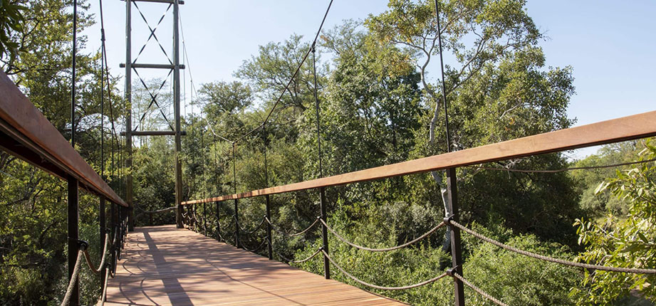 A standout feature of Jabulani is its iconic suspension bridge, gracefully arching over the riverbed and providing a scenic connection to the lodge’s six exclusive suites and the ultra-private Zindoga Villa. This unique architectural element enhances the lodge’s natural flow, allowing guests to fully immerse themselves in the surrounding wilderness.