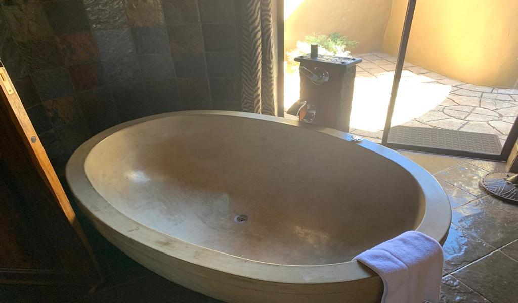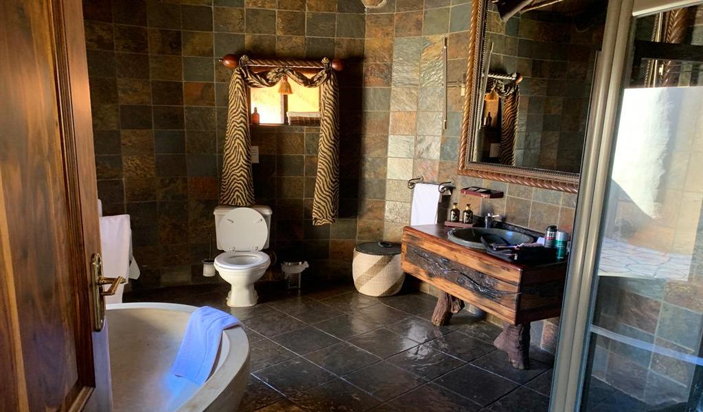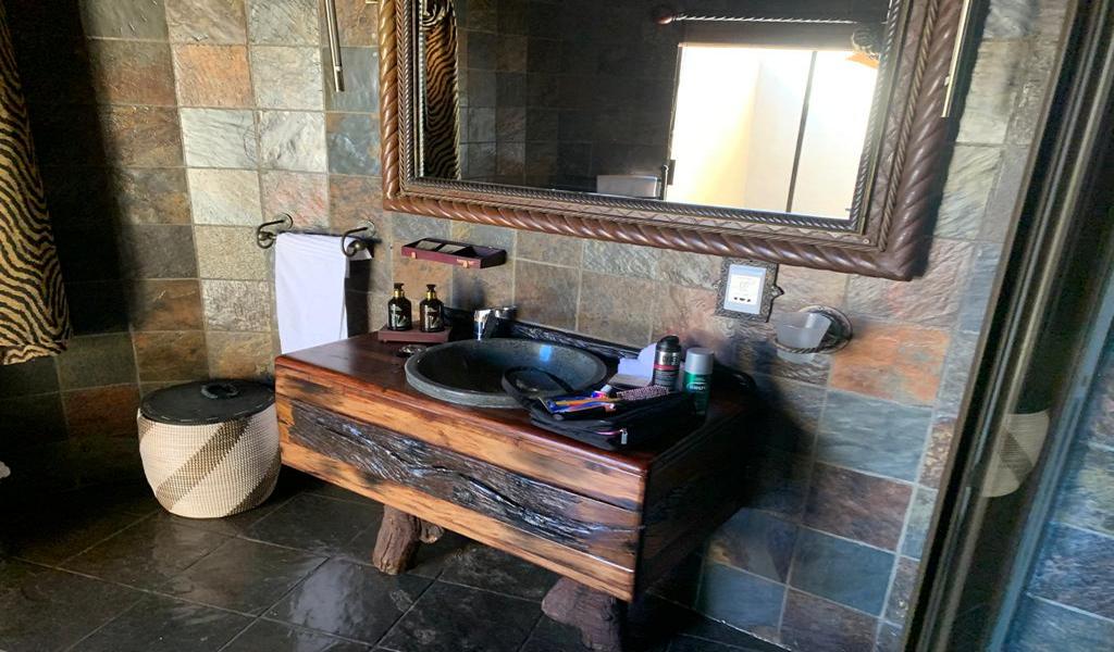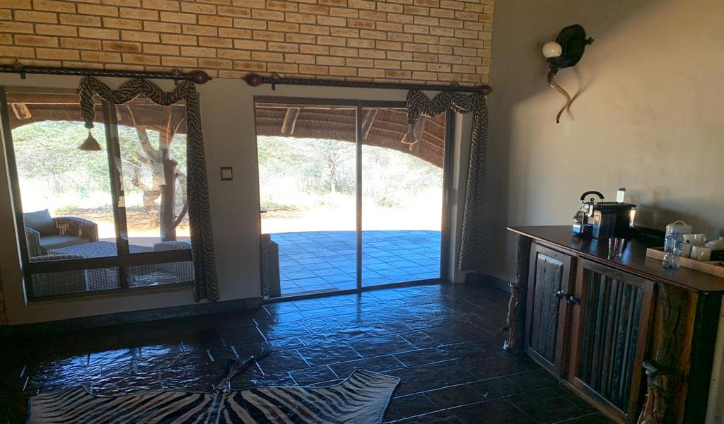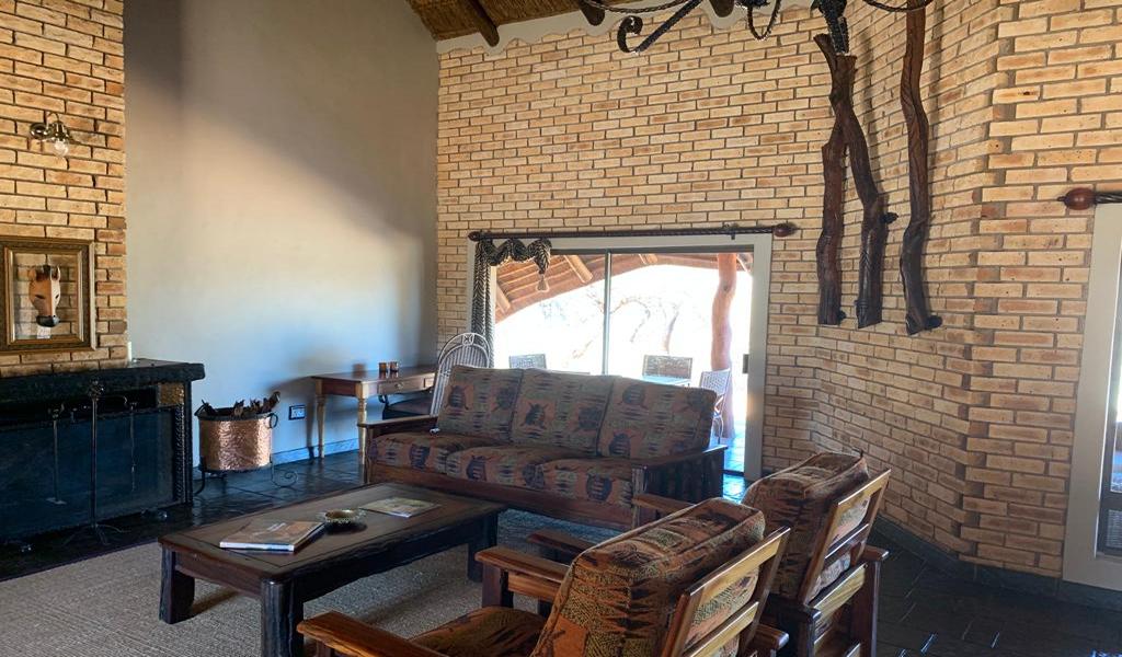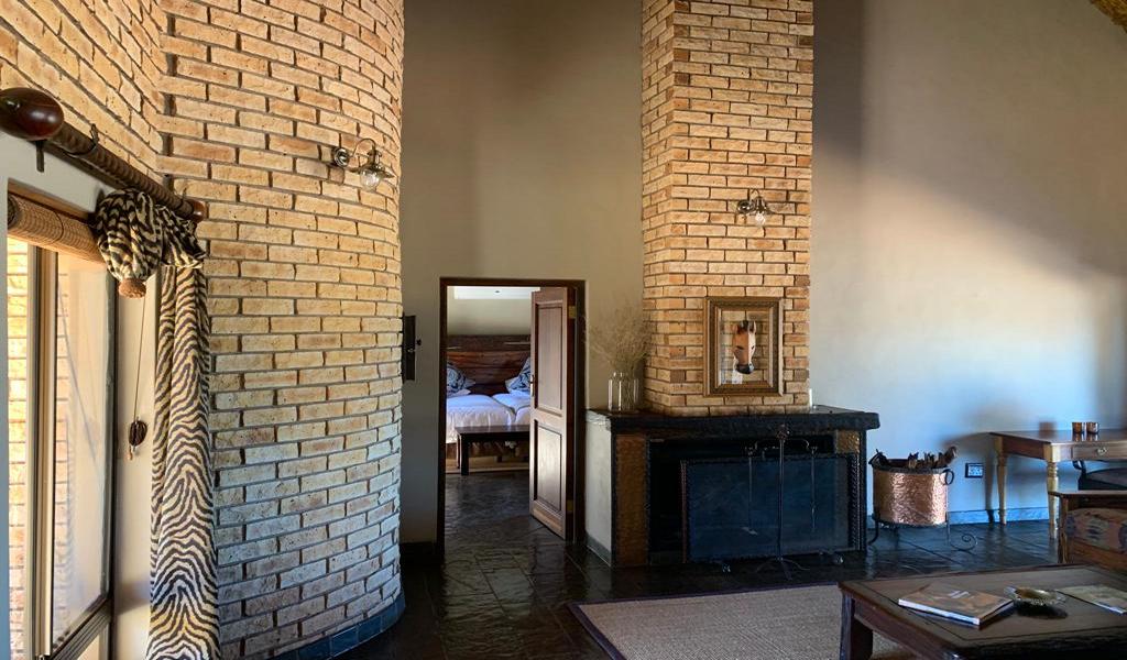 The lodge is fenced for peace of mind and overlooks a busy waterhole, making for an uninterrupted connection to wildlife. Accommodation is provided in two luxury two-bedroom chalets with all rooms en-suite, and a comfortable lounge area with coffee station and drinks fridge. The rooms can be set up with either a king-sized bed or two twin beds. All bedrooms are air-conditioned for comfort during the hot summers, while the lounge has a fireplace to warm up the cold winter nights.