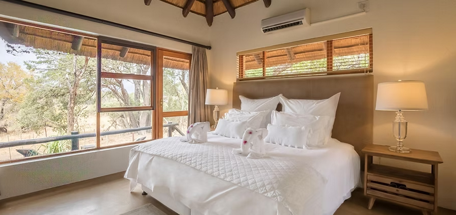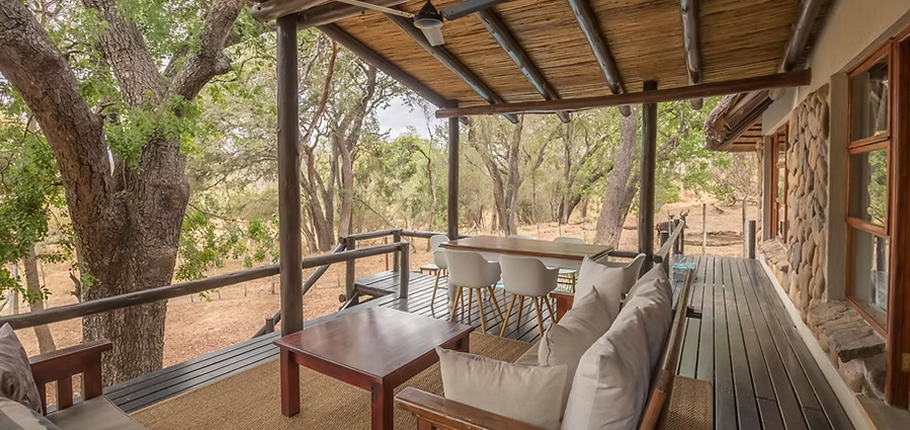 Situated along the lush Kuvenyami Riverbed, the property offers uninterrupted wildlife viewing from your deck — elephants, birds, and antelope are frequent visitors.