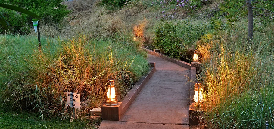Guests can easily access the hide from a scenic path within the lodge’s garden or from the swimming pool area, allowing for a safe and comfortable journey. The walkway leading to the hide is designed to ensure a smooth, uninterrupted passage to the tunnel, which keeps you hidden from view as you move.