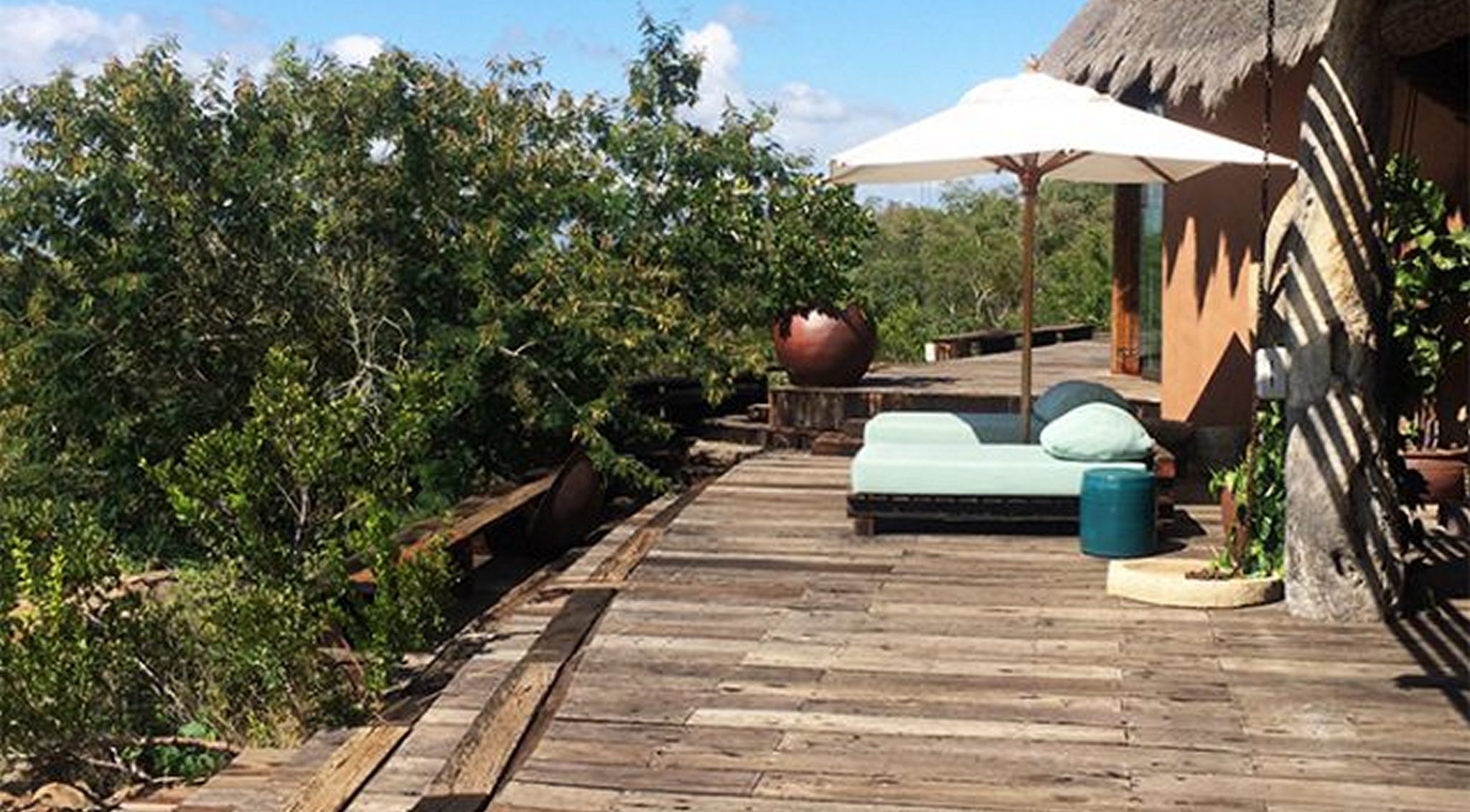 A covered veranda with large sofas, coupled with the huge deck, provides a number of fantastic places where you can sunbathe or relax in the evening. The Lodge has an enormous deck manufactured from antique railway sleepers. With commanding views of the Palala Valley and a nearby water hole, you can relax with a drink while watching the sun go down or take in the amazing night skies from the lodge’s sunken fire-pit. The swimming pool has been carved into the side of a hill and sits perched high – with amazing views of Palala Valley.