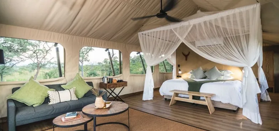 Mdluli Safari Lodge features 50 contemporary luxury tents, carefully designed for both comfort and immersion in nature. Each spacious tent accommodates up to four guests, making it ideal for families, couples, or solo travelers. The tents are wheelchair-friendly and fully equipped with: