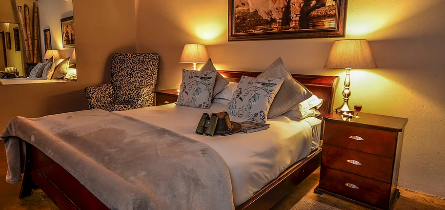 Retreat to one of our thatched en-suite chalets—designed to blend luxury and nature seamlessly. Each space offers a tranquil, homely ambiance with thoughtful finishes and panoramic views of the bush, allowing you to fall asleep to the distant call of hyenas and awaken to the soft whisper of the wind through the grasslands.