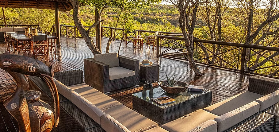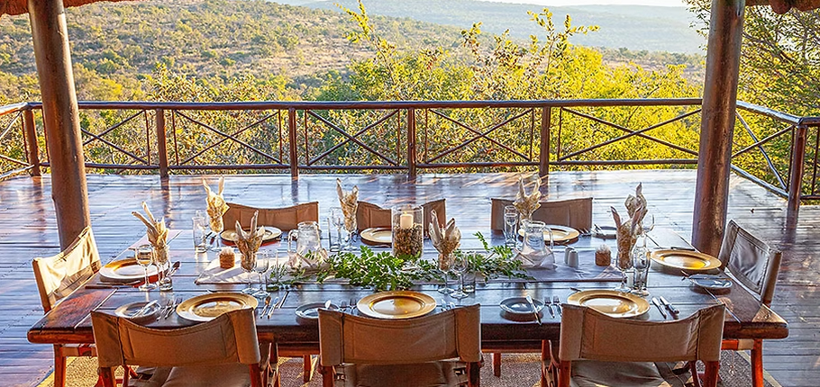Private viewing decks with uninterrupted west-facing vistas across the game-rich landscape