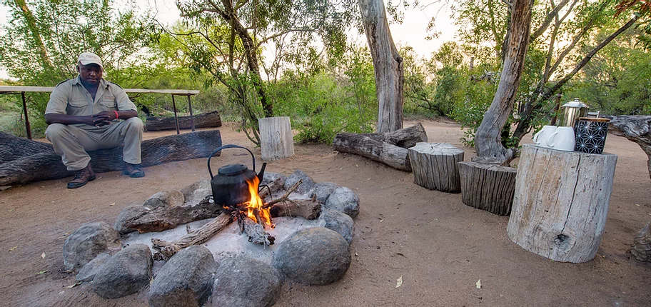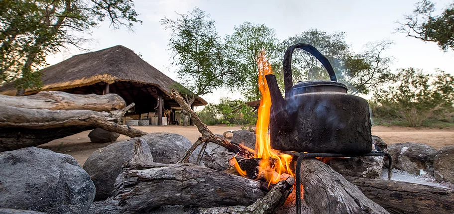 The kettle is kept warm on the fire 24/7, ready to pour you a comforting cup of tea or coffee at any time of day or night. This charming tradition enhances the rustic safari charm and invites guests to pause and enjoy the simplicity of life in the bush.