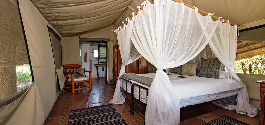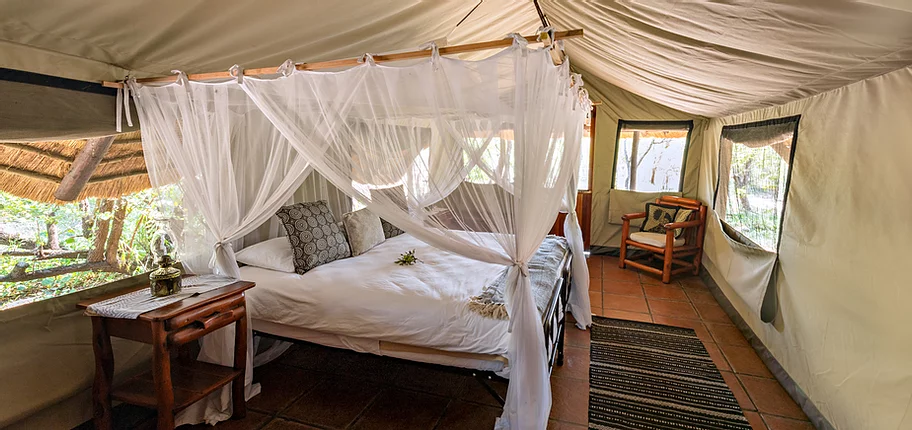 With just four classic Meru-style en-suite safari tents, Pungwe ensures a private, tranquil retreat for guests seeking a genuine connection with nature. The tents are spacious and tastefully furnished, offering simple yet elegant comfort with hot and cold running water, comfortable bedding, and authentic safari décor.