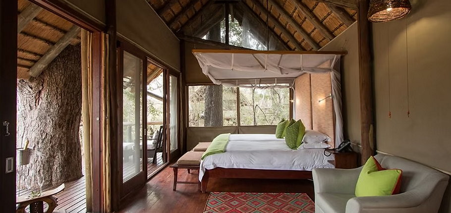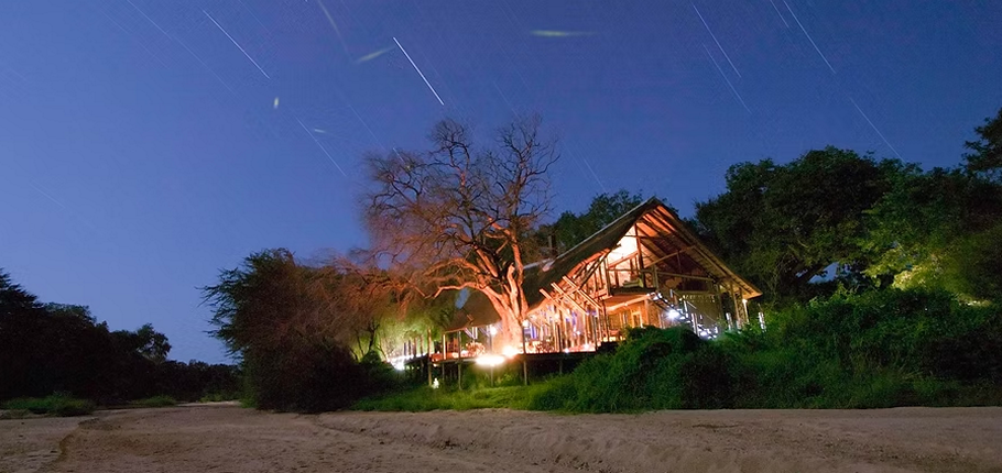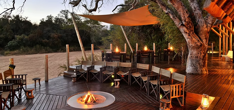 Designed with sustainability at its core, Rhino Post blends seamlessly into the natural environment. The lodge features eight luxurious, semi-permanent suites, each thoughtfully constructed from eco-friendly materials such as wood, stone, and canvas. Elevated walkways connect the main lodge with each suite, all of which overlook the usually dry Mutlumuvi riverbed, a prime wildlife corridor frequently visited by elephant, leopard, and antelope.