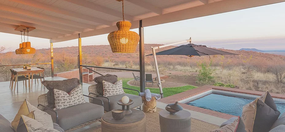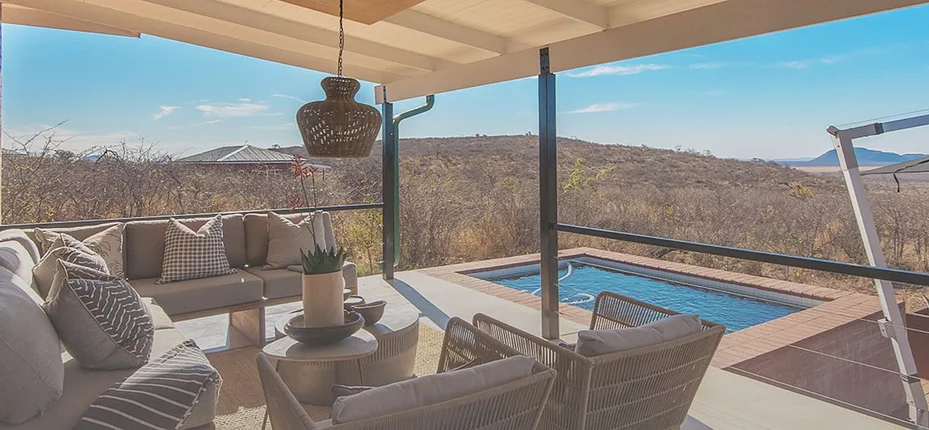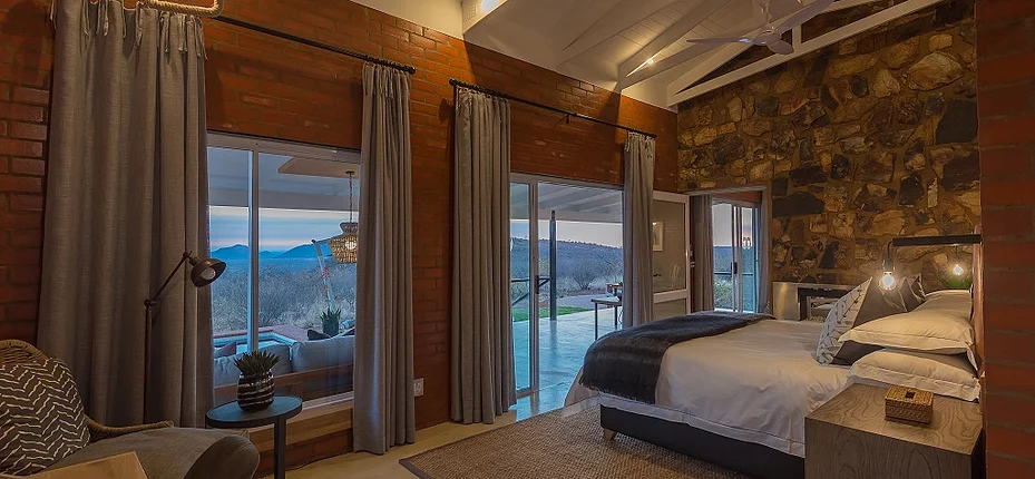 Each freestanding suite or villa has been designed with privacy, elegance, and relaxation in mind. Expect open-plan living areas, fully equipped kitchens, and expansive outdoor decks with breathtaking views over the Madikwe landscape. Whether you’re sipping coffee on your balcony, lounging in your private splash pool, or gathered around your personal firepit under a star-filled sky, Rock Fig invites you to slow down and reconnect with nature.