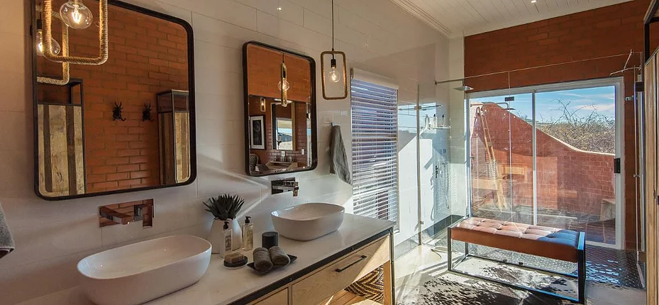 Indoor and outdoor showers for an immersive bushveld experience