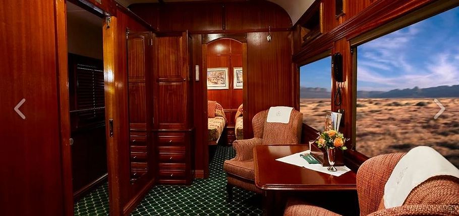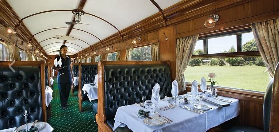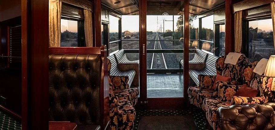 Each train has accommodation carriages, dining cars (±42 seats), a lounge car (±26 seats), a small gift shop, smoking lounge (±11 seats) and an observation car (±32 seats) with an open-air balcony. Maintaining the spirit of a bygone era, there are no radios or television sets on board.