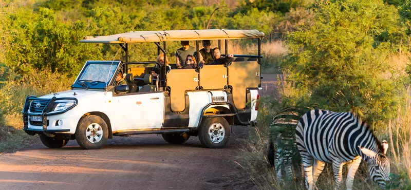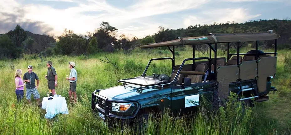 Guests enjoy two guided game drives daily, departing in the early morning and late afternoon in open 10-seater safari vehicles. Each drive lasts three to four hours and includes carefully chosen refreshment stops—sunset sundowners with breathtaking views or fresh coffee to start the day. Guided by expert rangers, these safaris offer unforgettable encounters with the Big Five, as well as cheetah, hyena, zebra, giraffe, and over 350 bird species that call Pilanesberg home.