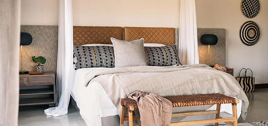 Every bedroom is designed for comfort and tranquility, with cooling tones, ceiling fans, and air-conditioning to ensure a restful stay, even during the warmer months.