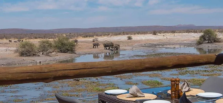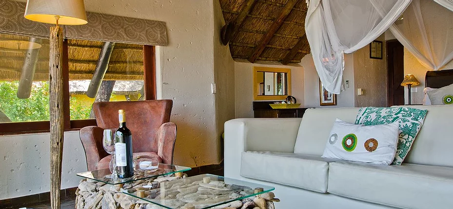 Accommodation consists of thatched chalets arranged in a gentle U-formation, each offering panoramic views across the waterhole and beyond. With air-conditioning, ceiling fans, and private wooden viewing decks, the chalets deliver privacy, comfort, and the thrill of front-row wildlife encounters. Every suite includes an en-suite bathroom, as well as an open-air shower for a more immersive connection to nature.