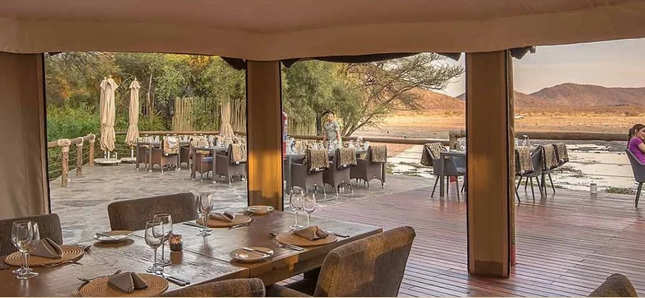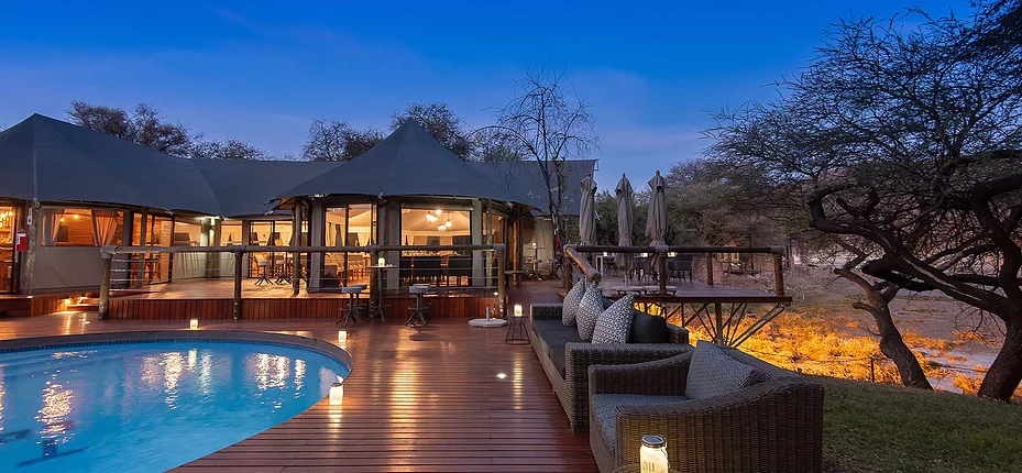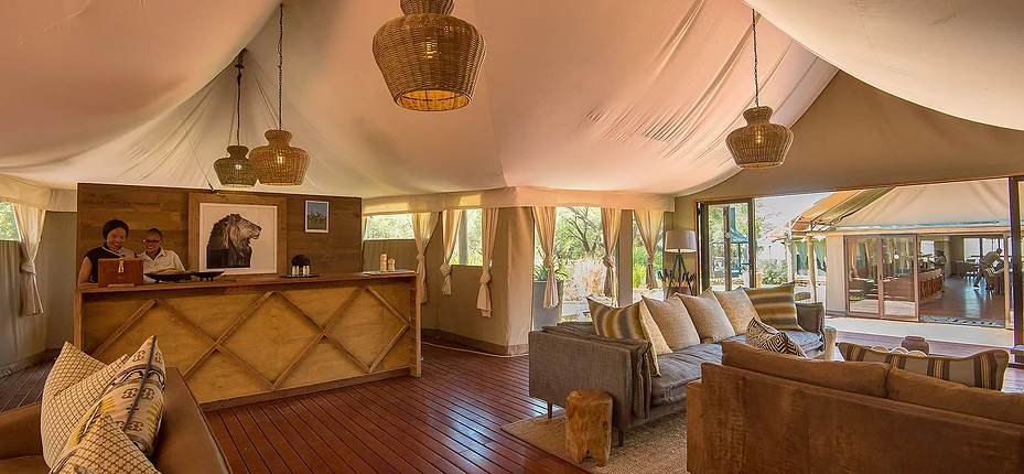 The elegantly appointed lounge, bar, and open-air dining areas are designed to blend seamlessly with the natural environment, offering uninterrupted views of the waterhole and surrounding bush. Enjoy sundowners, gourmet meals, and fireside chats while immersed in the sights and sounds of the African wilderness.