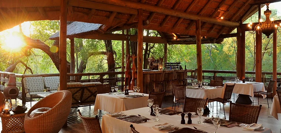 Located in the eastern region of the 75,000-hectare Madikwe Reserve, the lodge offers panoramic views from its elevated position within the trees. The main area of the lodge features an inviting open-plan layout, including a tastefully decorated lounge, indoor and outdoor dining spaces, and a reception area. A sparkling swimming pool and a well-stocked bar provide the perfect spots to cool off or relax with a drink in hand after an exciting day of game viewing. The traditional lapa, tucked into a forest glade, invites guests to gather and soak up the magic of the African bush.
