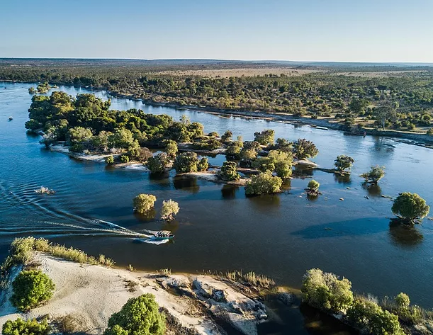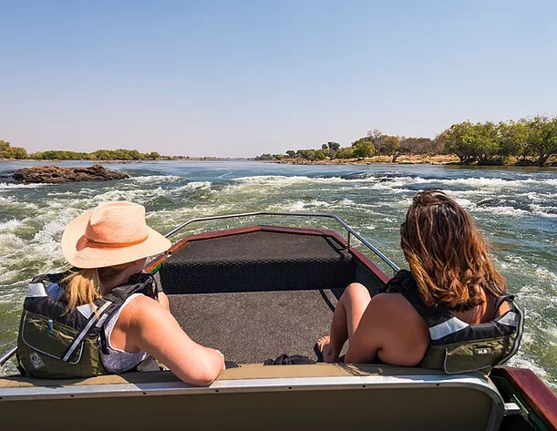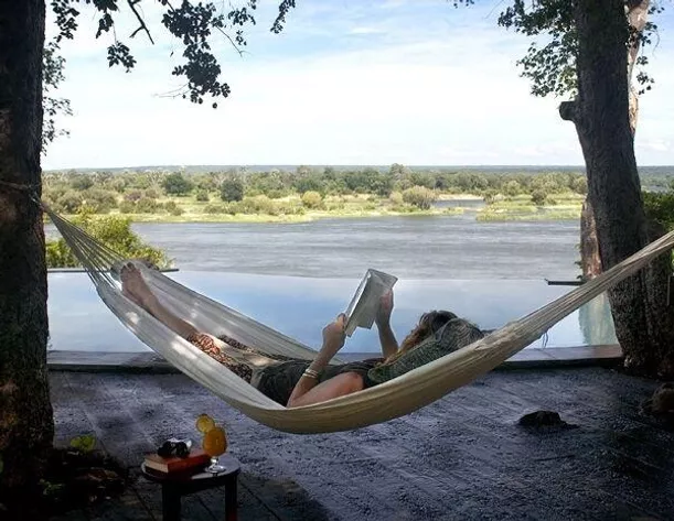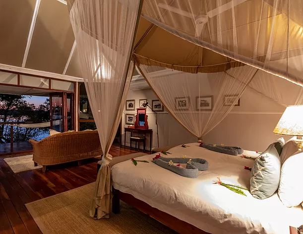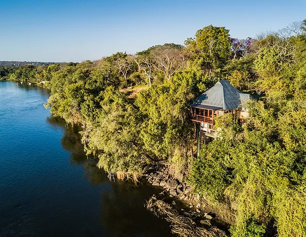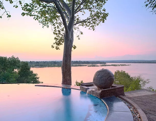 A boutique, owner-run luxury lodge, on the Zambezi River upstream from the Victoria Falls, Zambia.