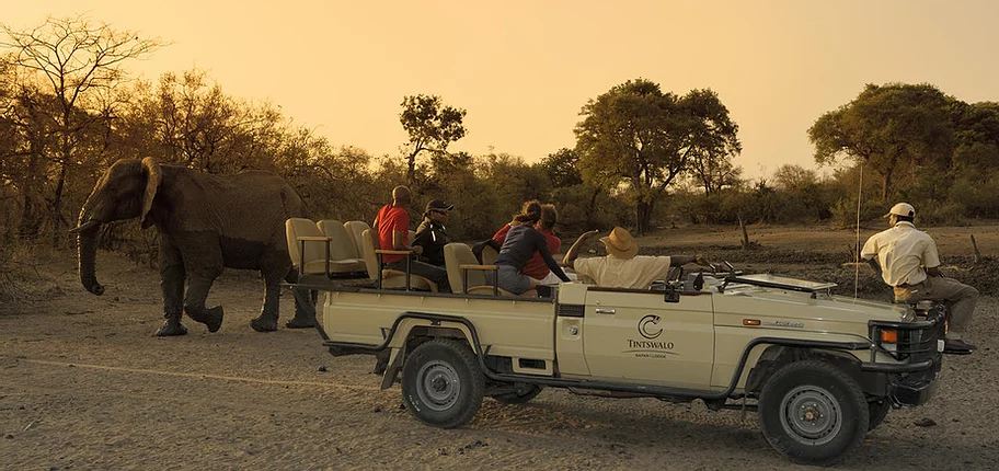 Game viewing at Tintswalo takes place on foot or in individually seated open game vehicles. The vehicles are fully equipped with spotlights for night viewing, radios for communication, mosquito repellent, ponchos for wet weather, and individual blankets to keep guests cosy if nights turn chilly. Guests are ensured to enjoy a truly five-star wildlife-viewing experience at Tintswalo Manor House by placing a canvas ‘goody’ bag containing binoculars, reference books, and treats on each seat for their use before the drive begins. Walks in the reserve are guided through the ever-changing environment of the African bush. This experience allows you the opportunity to come away with information on local wildlife, and insight into the local Shangaan traditions. All the experienced and professional guides are fully accredited, and are always accompanied by skilled trackers who know their surroundings well. Afternoon game-viewing is followed by a sunset sun-downer stop.