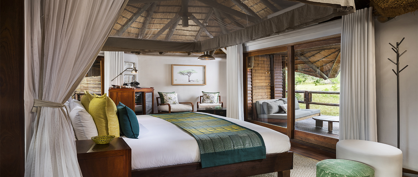 Tucked away on the edge of a dry riverbed, the lodge is perfectly placed to witness a constant flow of animals making their way to the nearby watering hole—elephants, leopards, nyala, and more right from your deck or the main lodge areas.