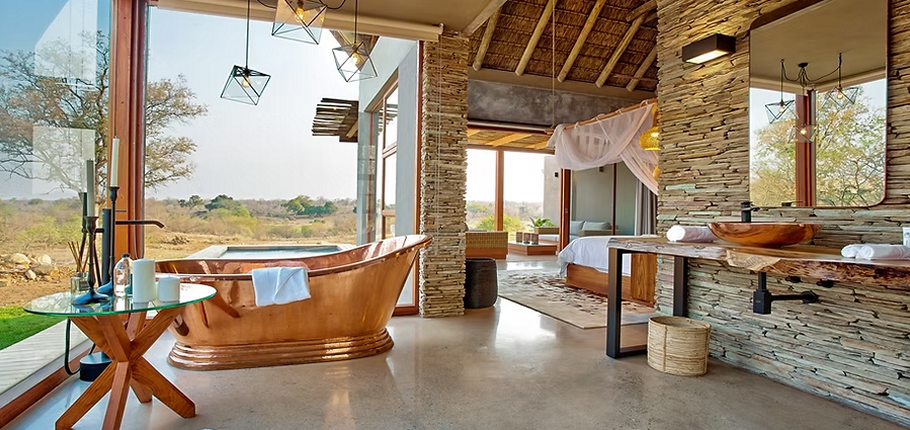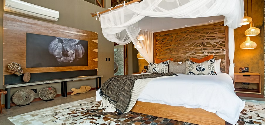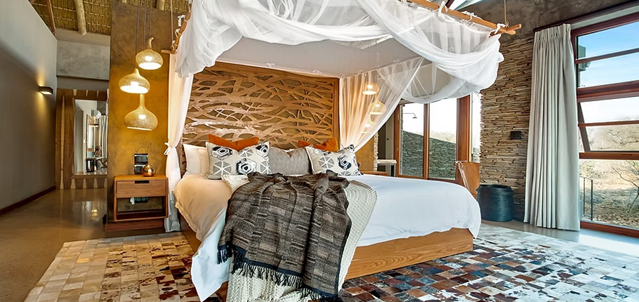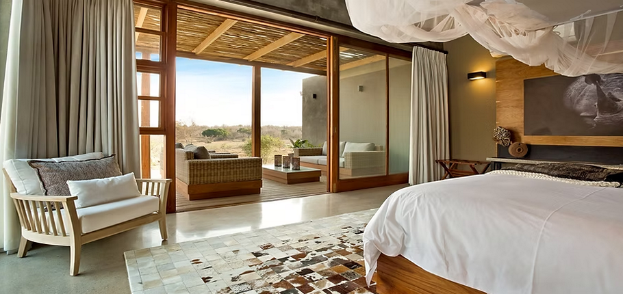 Each spacious, air-conditioned suite is meticulously designed to complement the natural surroundings, with modern finishes, luxurious bedding, and panoramic views of the African bush.