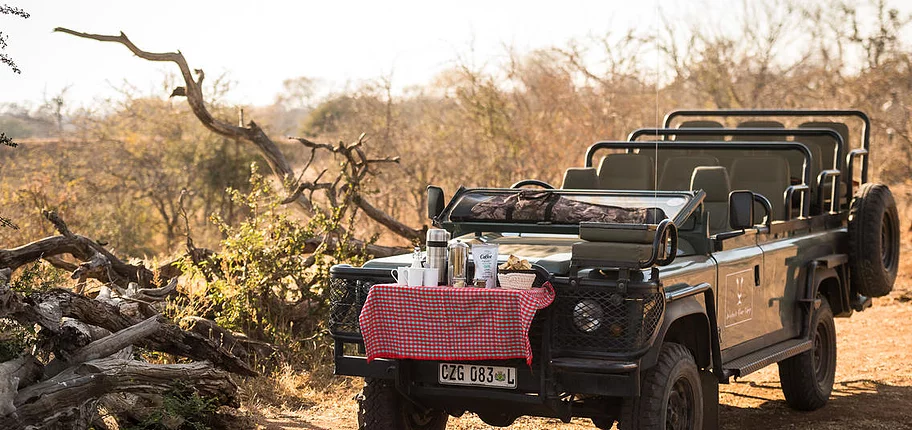 Your day begins with an early morning game drive, typically departing just after sunrise — the ideal time to spot predators on the move and animals gathering at waterholes. Drives last around 3 hours, with a scenic coffee stop in the bush to stretch your legs and take in the sunrise. In the late afternoon, you’ll head out again for another 3-hour drive, ending with the quintessential sundowner stop, where you’ll enjoy drinks and snacks as the African sun dips below the horizon.