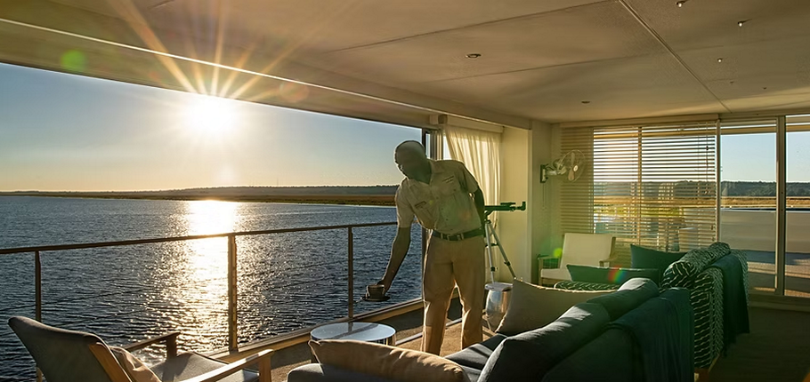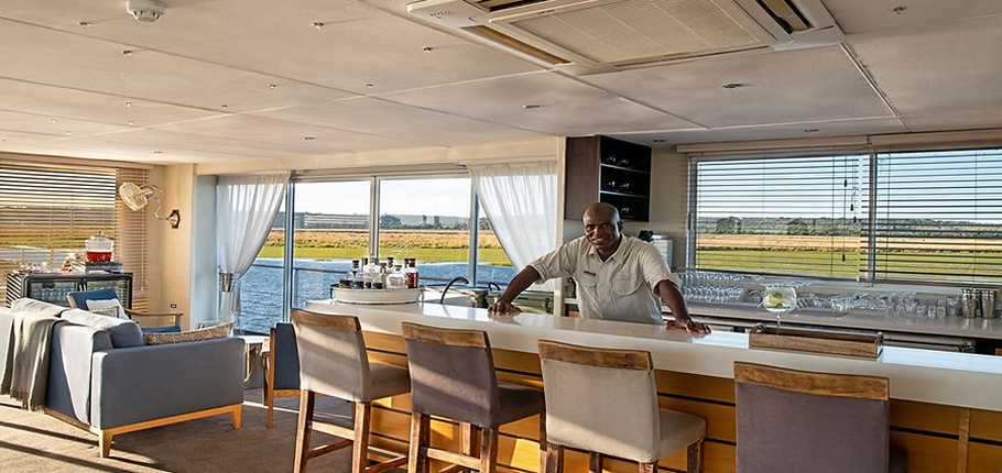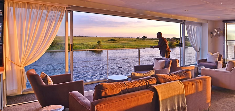 Your journey begins with a graceful tender transfer from the Kasane Immigration Office, with flexible boarding times every hour between 13:00 and 16:00—your safari, your schedule.